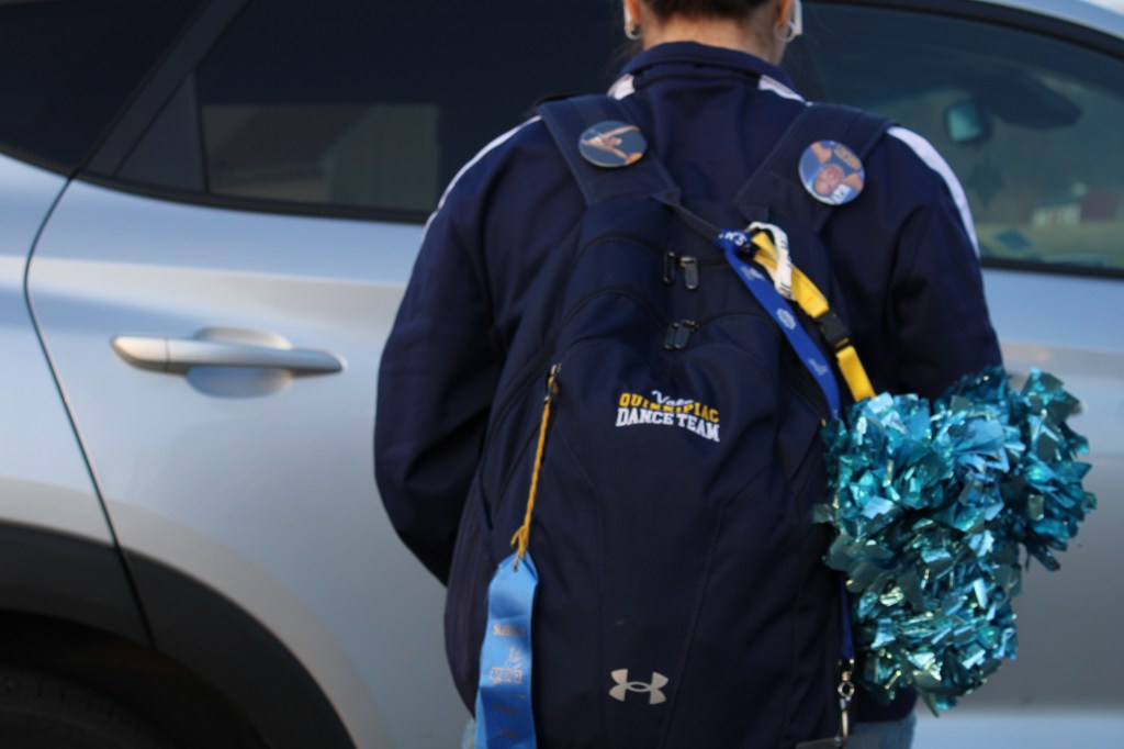 In the zone at all times. With bags and pom-poms in tow, a dancers headphones are always on hand to help them lock in for the events ahead. Whether its the walk to the studio, a basketball game, or to class, music is flowing through a dancers body as they visualize the routines in their heads.