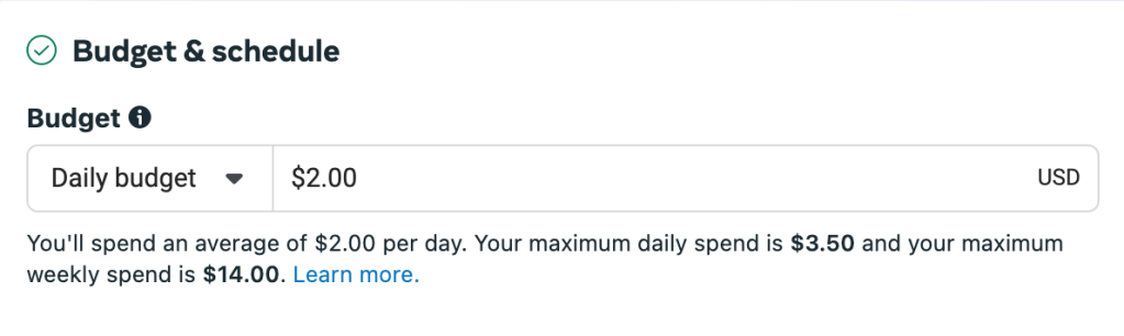 Since the Scandi Shoppe is a very small brand and has no prior experience in paid social media ads, I’ve kept the spending limit very low for the first run as recommended by Sachs Marketing Group, it’s smart to “start small to test effectiveness, possibly $1 to $5 daily”. I’ve selected to keep it at $2 a day for the run of the campaign in efforts to minimize costs, we can then make necessary changes as the campaign runs and we see what type of engagements it brings in.