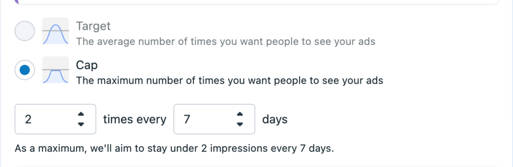 I am aiming for 2 impression every 7 days, because as you can recall, the more you make people feel like they’re being sold something, the less likely to are to want to interact with it. So, twice a week will keep Scandi Shoppe on peoples radars while keeping the pushy-ness to a minimum.